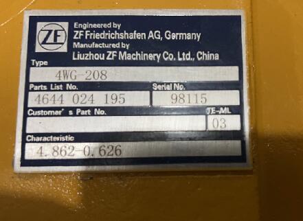 ZF 4WG208 transmission assembly 4644024244, 4644 024 244 used on Liugong wheel loader